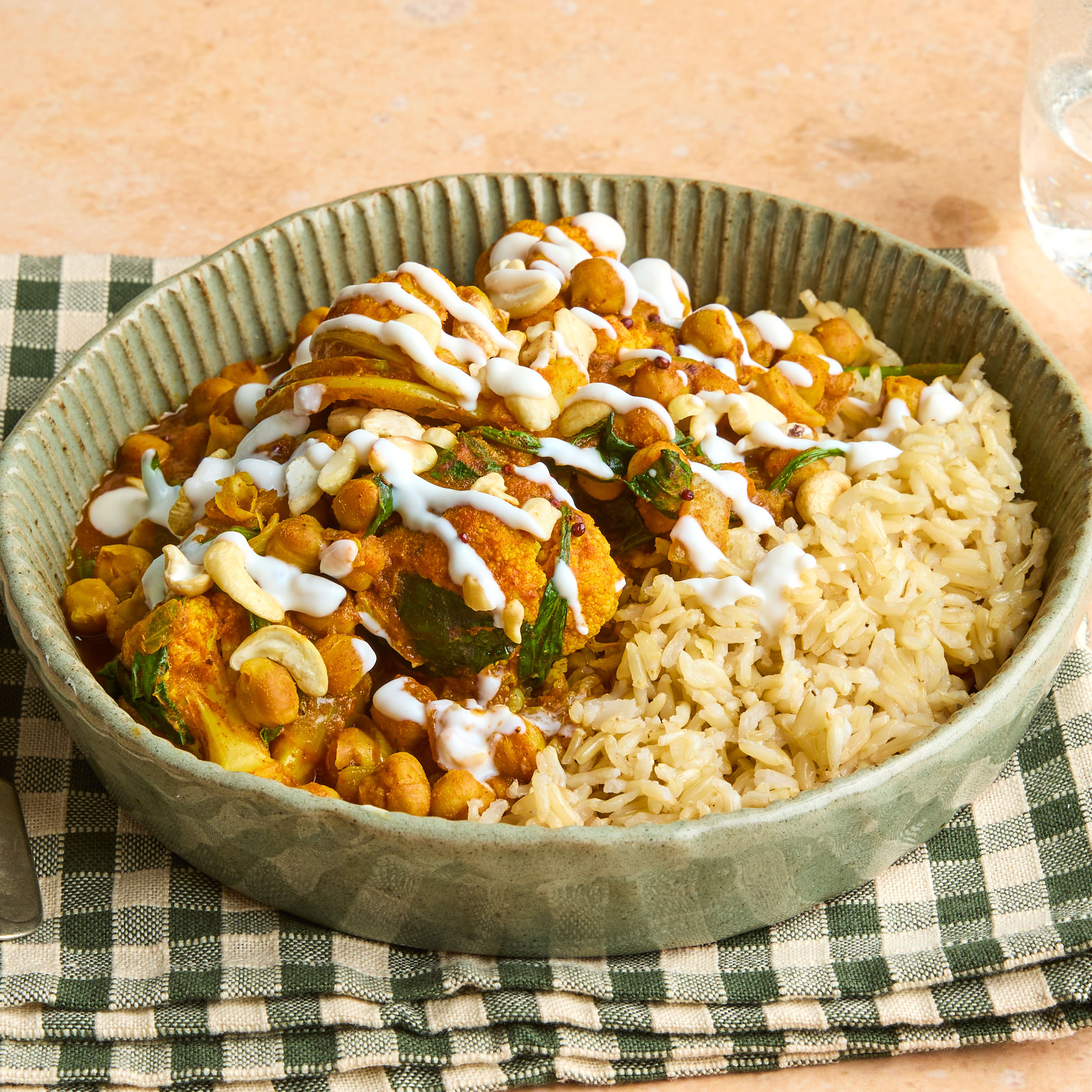 Nothing says comfort like a bowlful of curry. Simply simmer cauliflower and chunky chickpeas in a creamy sauce, infused warm spices and aromatics. |