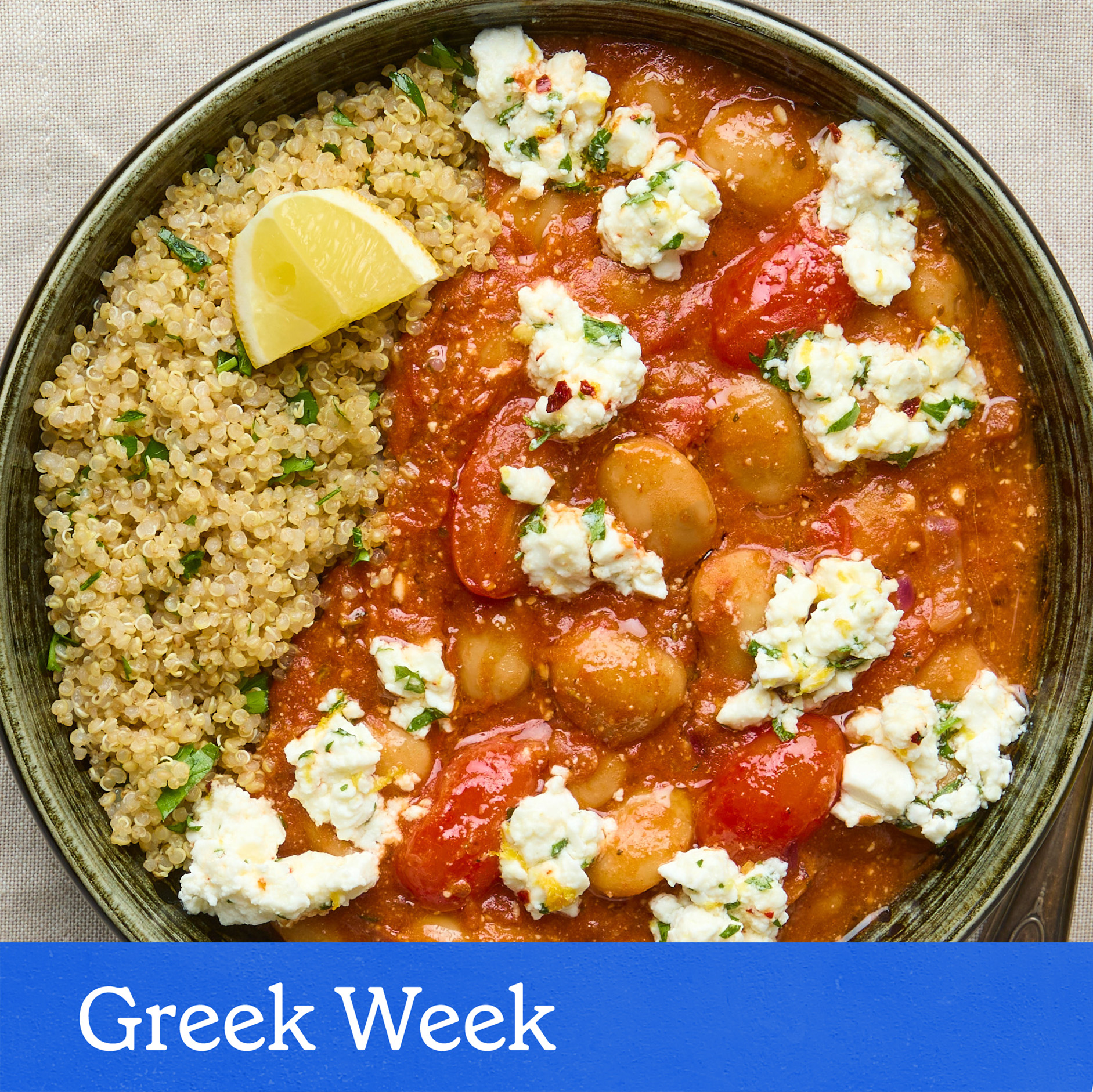This is our take on Gigantes Plaki - the Greek version of baked beans. You'll simmer Bold Beans' Queen Butter Beans in a rich tomato sauce, infused with herbs and spices. Then serve alongside herby feta and a refreshing quinoa salad. |